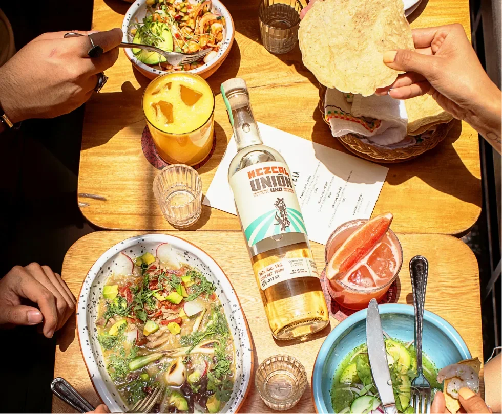 Mezcal Unión Uno: An un-aged (Joven) artisanal mezcal handcrafted with a blend of farm-grown Espadín and wild Cirial agaves, matured for 8 to 14 years. It is known for being an approachable entry-level mezcal with balanced fruity and herbal notes, along with a pleasant hint of smoke. Tasting notes often include fruits (like pear and green applewood), mint, wet soil, and lime, making it ideal for cocktails like the Margarita or Paloma.
