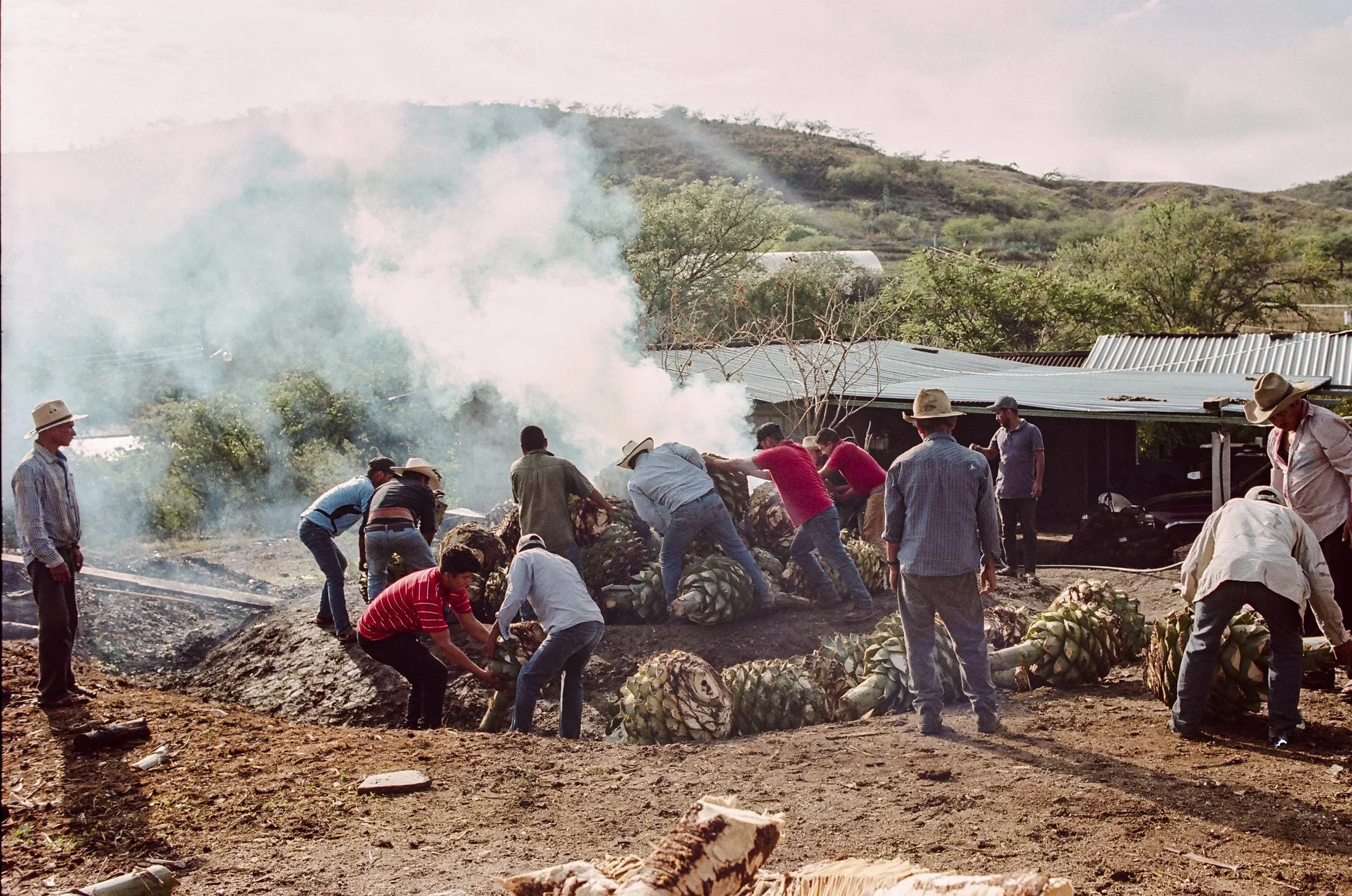 NETA exclusively commercializes single-batch agave spirits from producers in Miahuatlán and almost entirely from the 110-person village of Logoche. When talking about "single batches" we are referring to lots produced from a single oven or harvest of agave. The process of crafting these batches begins with the harvest of mature en guía or capón plants, often of various species or types of agave around the time of the full moon, that are then cooked together in a conical earthen pit. The roasted agave hearts or piñas are then either separated and designated for multiple smaller batches, or macerated and fermented together in their entirety to make a single batch. In accordance with traditional practices, the spirits produced from different ovens are not blended, homogenized, or standardized to a particular ABV. Each production is unique and bottled at still-strength by members and family members of the co-op and the quantity produced is relative to the number of agave cooked in an oven and their respective yield. Agave spirits are agricultural products, and the quantities of production should reasonably reflect the availability of local resources.