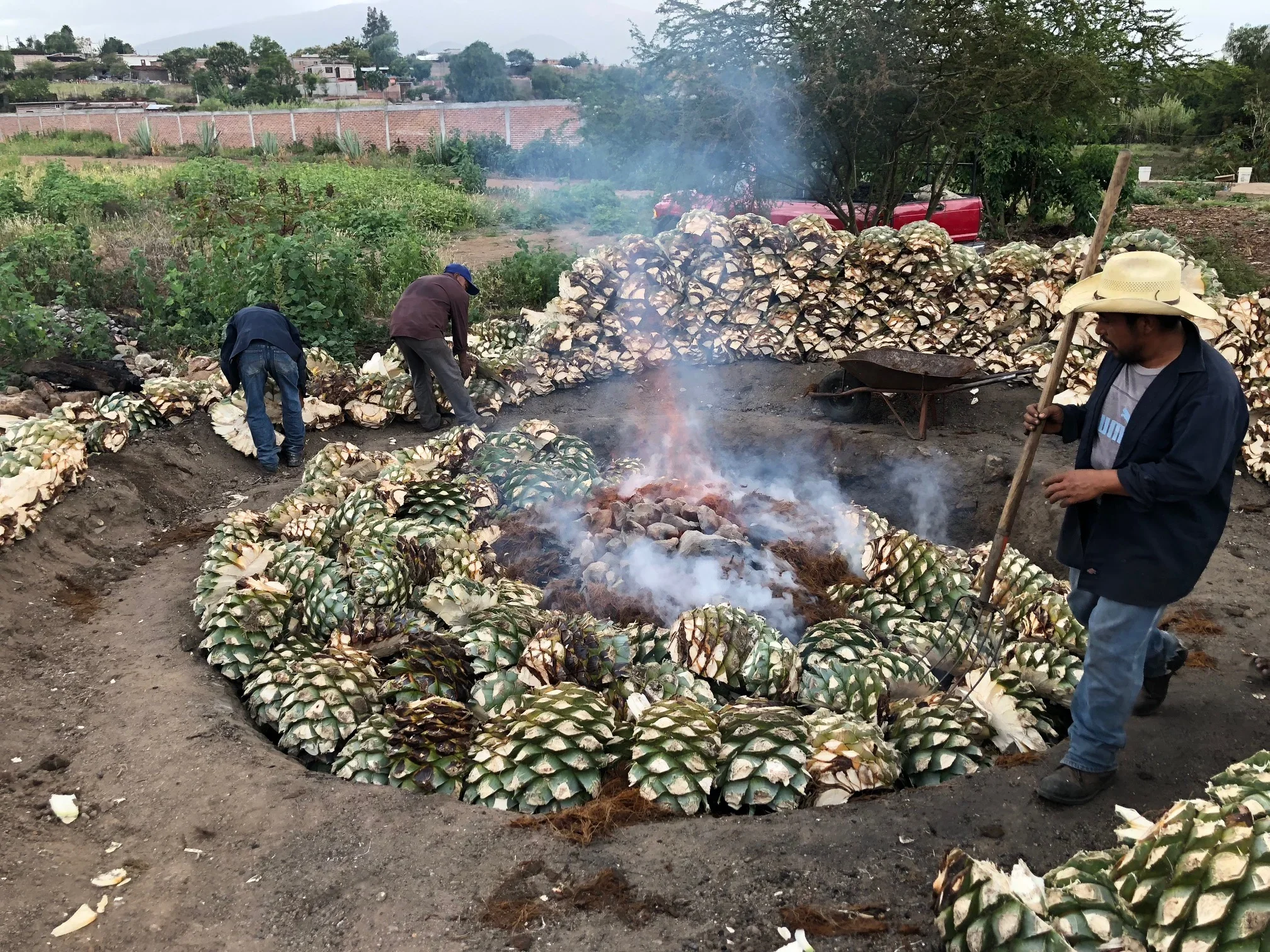 The Smoke: This step is what gives most mezcals their signature smoky flavor. The piñas are chopped and roasted in a conical earthen pit oven (horno) lined with volcanic rocks.