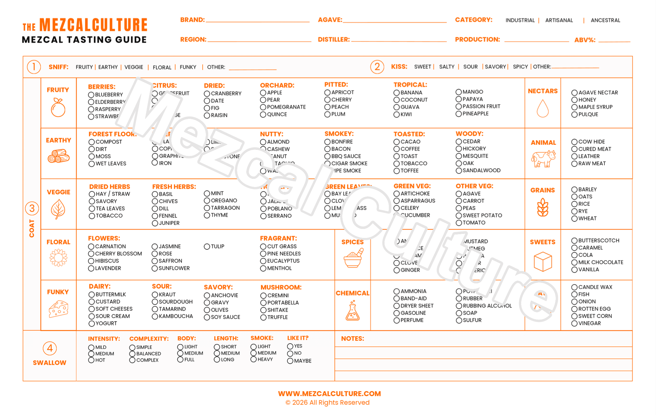 Drinking mezcal without appreciating all of its little nuances is irresponsible. Our tasting guide helps you identify every note in a fun and approachable way. So you're not irresponsible.