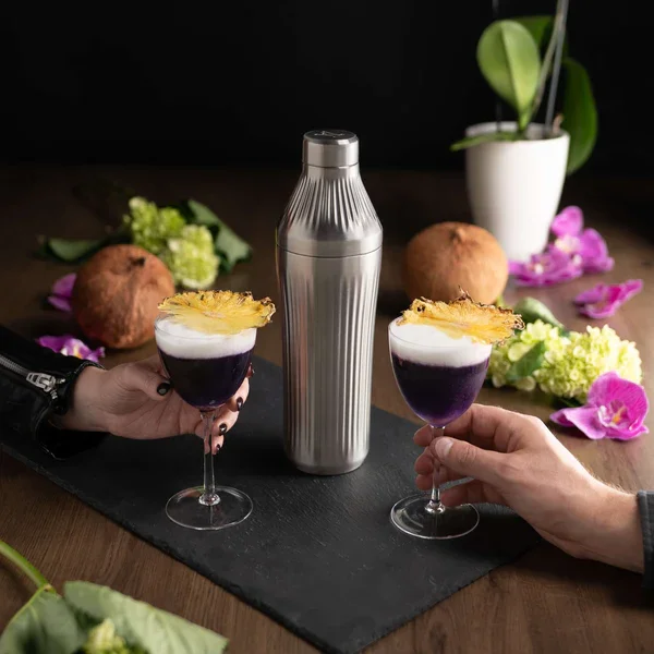 If you think mezcal isn’t your thing, today's cocktail might just change your mind. This eye-catching purple drink features a delightful blend of vodka, mezcal, and nigori sake.
