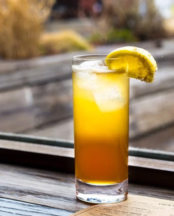 Combine ingredients in a cocktail shaker with ice. Shake until chilled, strain into a Collins glass with fresh ice. Garnish.